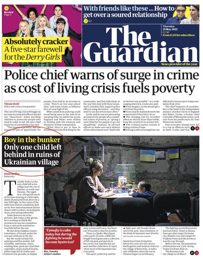 The Guardian: «Хлопчик у бункері». У руїнах українського села залишилася лише одна дитина. Тимофій Сєїдов – єдина дитина, яка залишилася у своєму селі під Харковом на північному сході України. Восьмирічний хлопчик проводить більшу частину свого часу, малюючи за маленьким столом, тьмяно освітленим зверху крихітною світлодіодною лампою в кутку. Це майже повністю темний підвал площею 40 на 5 метрів, який він ділить із 23 іншими людьми, включаючи його маму, тітку та бабусю.