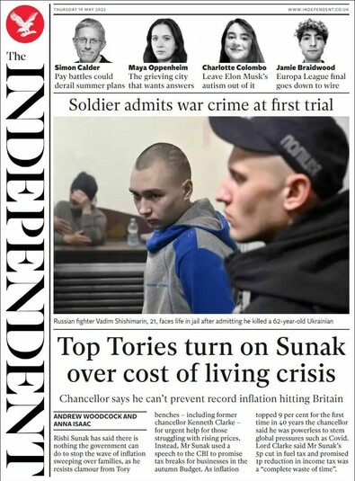 Independent вийшла із заголовком: «Солдат визнав військовий злочин на першому суді». Російському 21 річному бійцю загрожує довічне ув'язнення після того, як він зізнався, що вбив 62-річного українця.