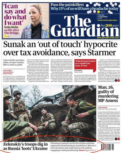 Газета The Guardian анонсує матеріал на трьох шпальтах: «Українські війська, зображені на Донбасі (фото), в той час як Росія, похоже, готувала там штурм. Тактичний поворот Москви виник на фоні повідомлень про масове мародерство її солдат.
