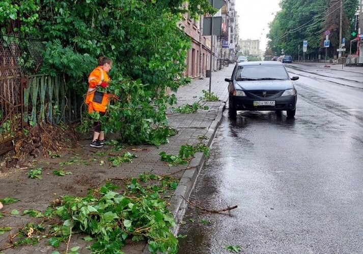 Як повідомив мер Тернополя Сергій Надал, через зливу і сильний вітер ніхто з людей не постраждав. Станом на 18 годину відомо про п’ять повалених дерев. На вулиці Замкова дерево впало на лінію електропередач та легковий автомобіль. Також на вулиці Живова авто пошкодило дерево, яке впало.