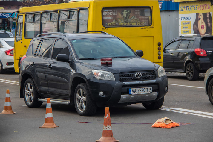 У суботу, 8 грудня, на вулиці Декабристів у Києві сталася аварія за участю автомобіля Toyota RAV4 і чоловіка-пішохода. Дівчина на позашляховику збила пішохода на «зебрі».
