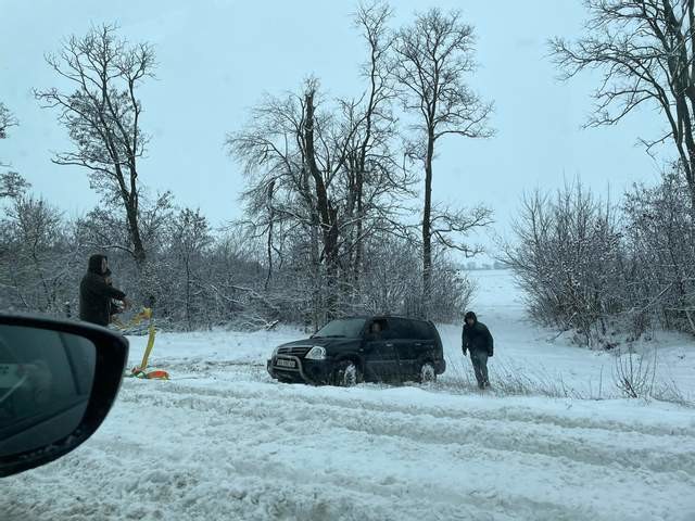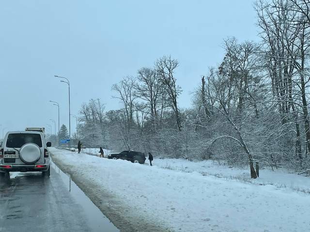 Деякі автомобілі, поки не утворились затори, «злітали» з траси на узбіччя через велику кількість неочищеного снігу.