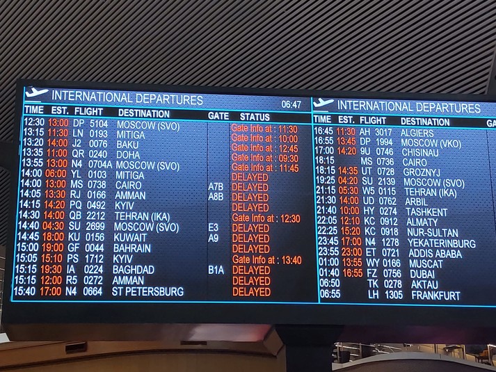 На табло аеропорту вказано, що скасовані авіарейси турецької авіакомпанії Turkish Airlines та лоукостера Pegasus Airlines, які мали прилетіти до Львова о 08:50 та о 15:20. Також скасовані авіарейси, які мали відбутися зі Львова до Туреччини о 09:40 та о 16:20.
