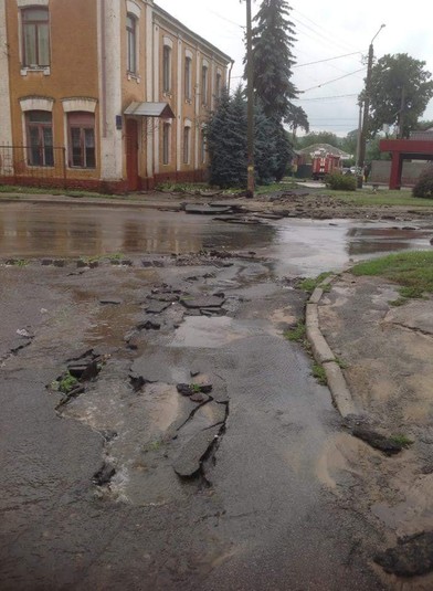«Біля школи №4, виїзд з вул. Десняка на вул. Толстого асфальт, що клали цієї весни, змило», - йдеться у повідомленні.