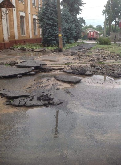 У Чернігові дощем змило новісінький асфальт: фотодоказ