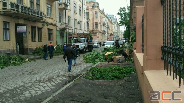 Як зазначається, завали дерев досі прибирають, рух вулицями обмежений.