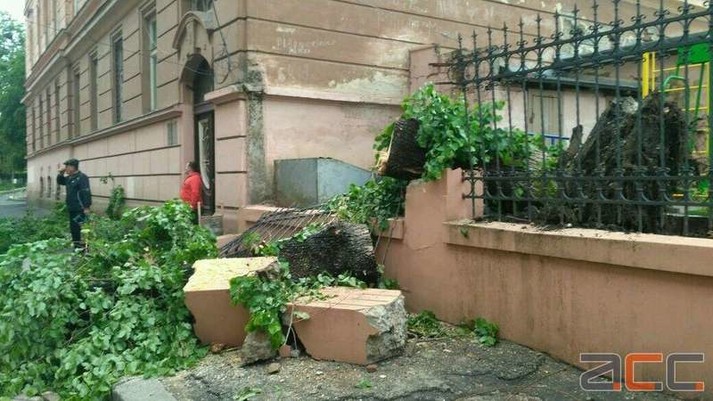 Зокрема, на вулиці Лисенка дерево впало на дорогу, заблокувавши проїзд автівкам. Також дерево пошкодило паркан Чернівецької спеціальної школи-інтернату №2.