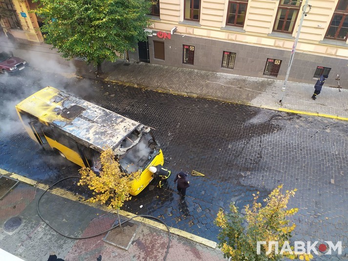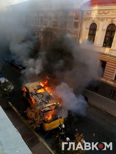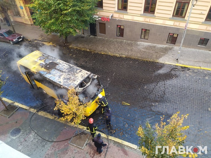 У вівторок вранці, 26 жовтня, у центрі Чернівців згоріла маршрутка. Про це повідомляє кореспондент «Главкома».