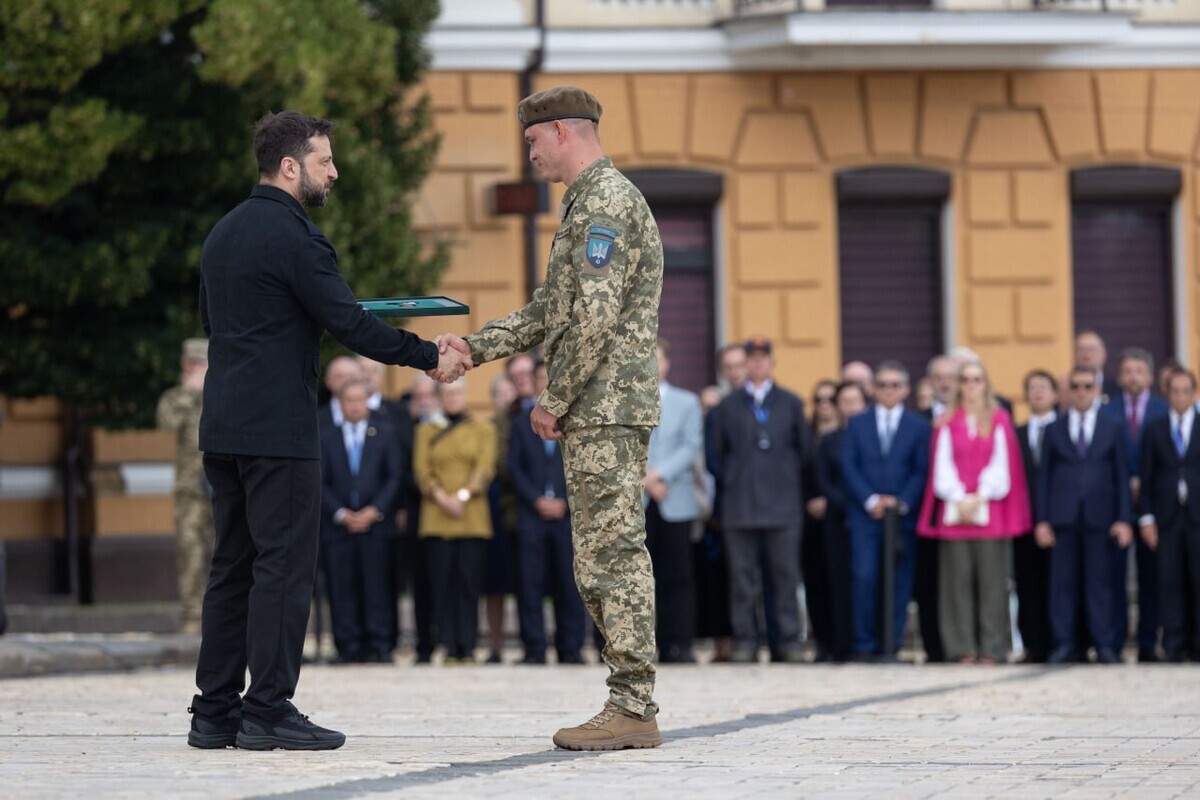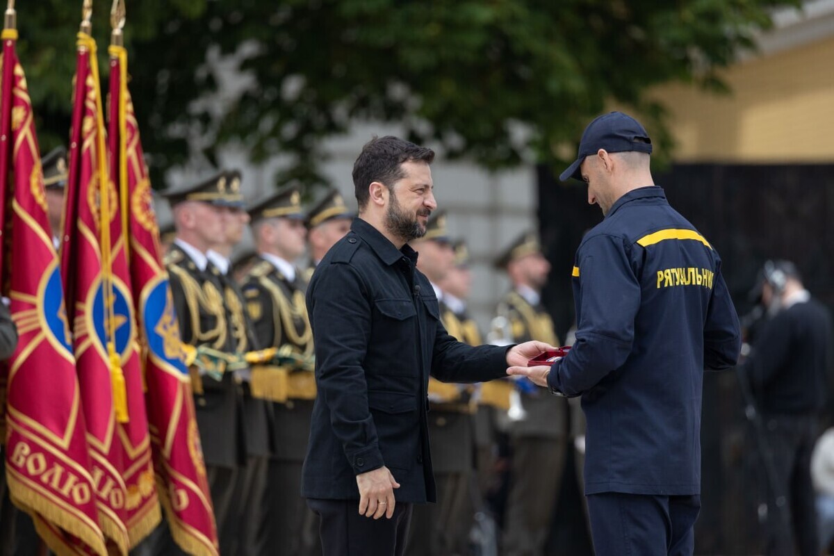 Президент також вручив нагороди священникам, спортсменам, освітянам, волонтерам, артистам та журналістам і присвоїв почесні звання. Зокрема, директор ліцею №1 у Гостомелі Володимир Захлюпаний, який 30 років працює з дітьми, отримав звання «Заслужений працівник освіти України». Його сина під час окупації вбили росіяни, але чоловік не зламався й продовжує присвячувати життя сотням інших дітей.