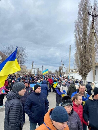 У Херсоні, куди напередодні змогли вдертися війська РФ, люди 5 березня масово вийшли на мітинг проти окупації.