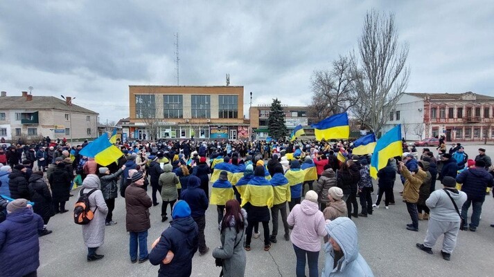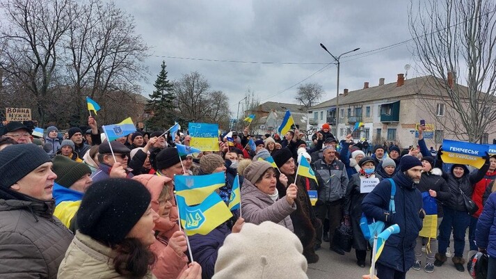 У Геніченську Херсонської області у неділю, 6 березня, відбувся кількатисячний мітинг. Це найбільший мітинг у Генічеську за останні 30 років, пише «Телебачення Торонто», посилаючись на місцеве видання «Новый Визит».