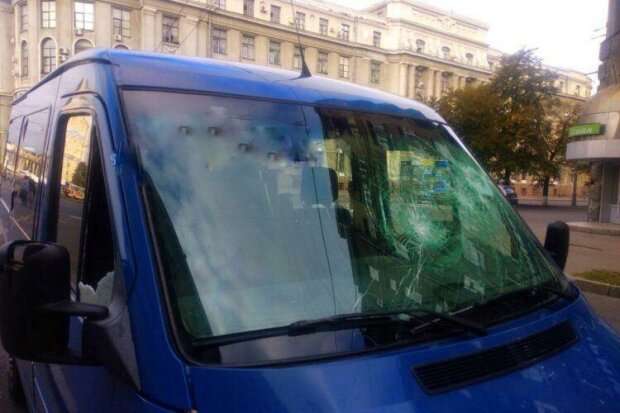У Харкові чоловік потрощив кувалдою мікроавтобус (фото)