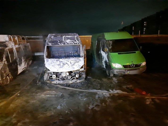 У повідомленні, яке було опубліковано представниками ДСНС, сказано, що пожежа сталася в ніч з 23 на 24 квітня о 01:40 на вулиці Сонячній. Пожежники прибули на місце події, і побачили, як горять мікроавтобуси Mercedes Sprinter і Ford. Загальна площа пожежі – 50 квадратних метрів.