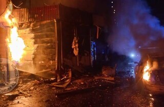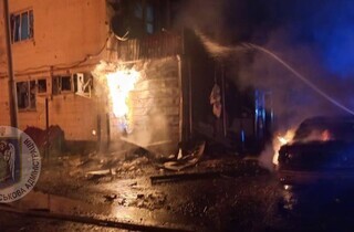 «У Соломʼянському районі після падіння уламків БпЛА займання в житловому будинку. Палають також декілька автівок. Займання й у торгівельному приміщенні. Всі екстрені служби на місці», – повідомив Кличко.