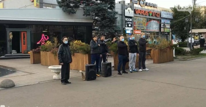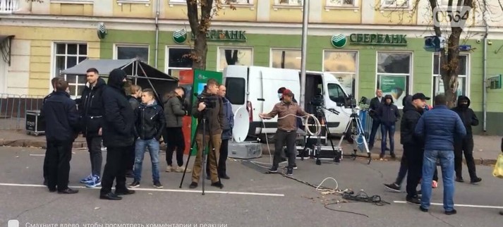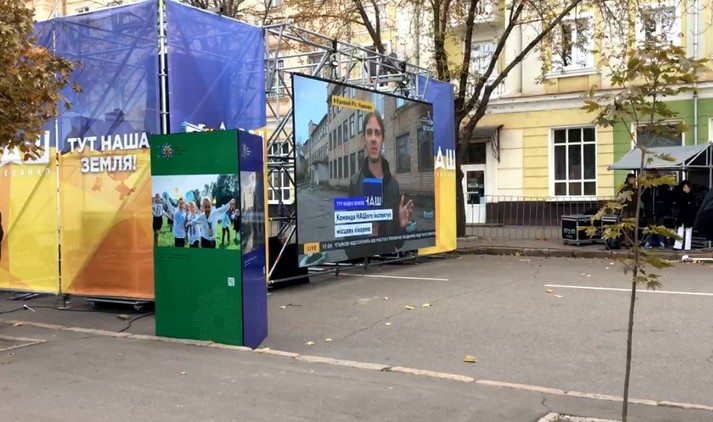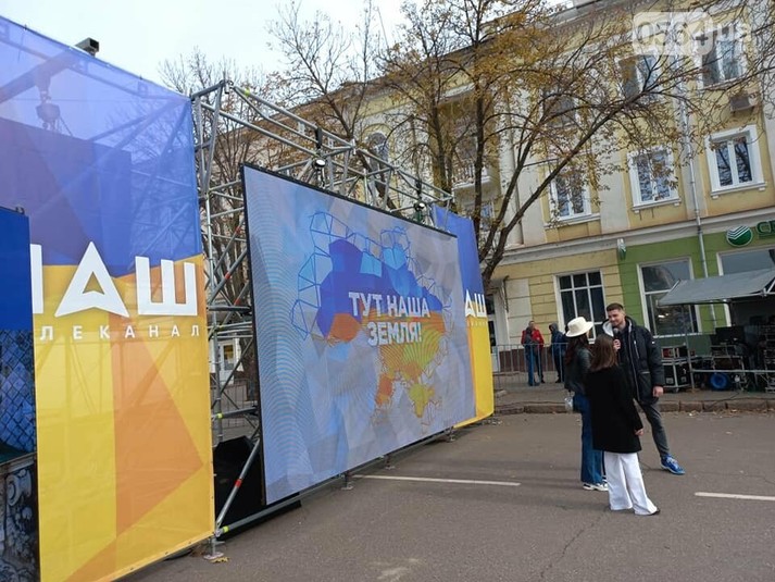 Криворізькі активісти привезли колонки та включили патріотичні пісні, які перебили звук трансляції каналу «Наш»
