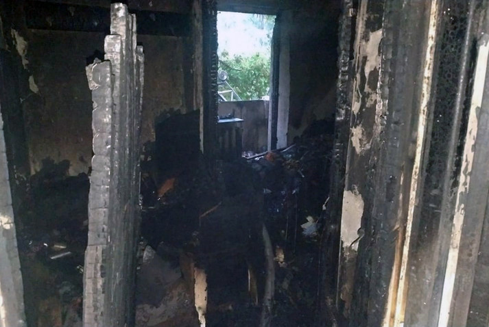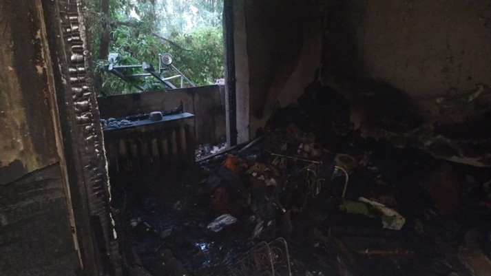 Вогнем знищено домашнє майно в квартирі та пошкоджено балконну раму в квартирі на четвертому поверсі. Загальна площа пожежі становить 30 кв. метрів.