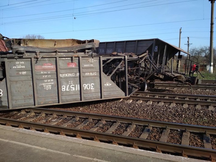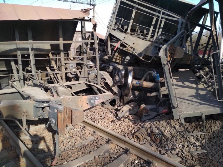 За інформацією видання «Варта 1», товарний потяг зійшов з рейок, перевернулись як мінімум десять вагонів.
