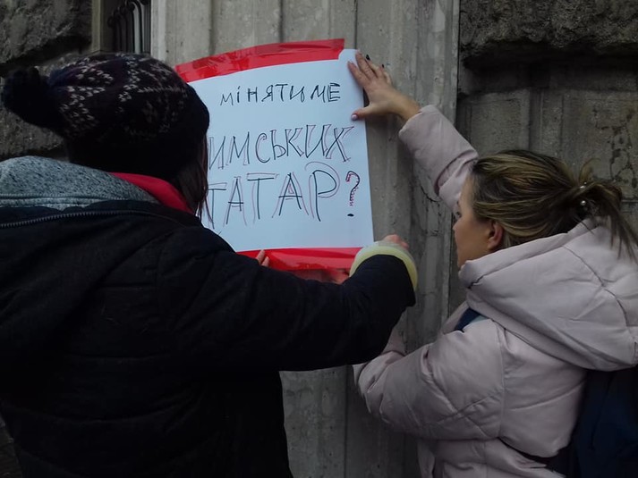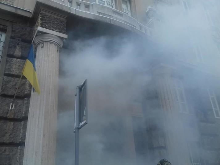 Люди зібралися під стінами прокуратури з гаслами, що засуджують обмін звільнених апеляційним судом Києва, колишніх бійців «Беркуту», обвинувачених у масових розстрілах на Майдані.