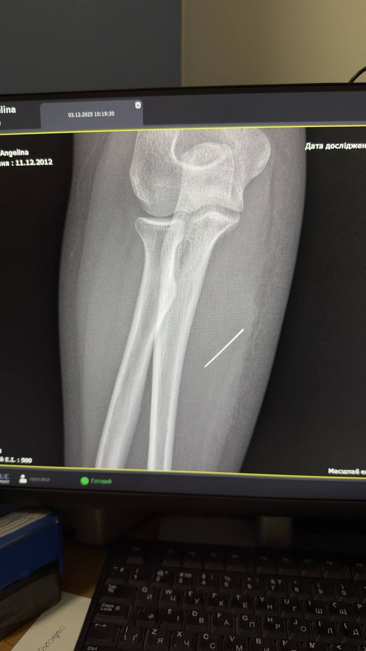 «При зверненні ми дійсно виявили ущільнення, біль від якого розходився донизу вглиб, що нас насторожило. Ми відправили її на УЗД м’яких тканин і під час обстеження виявили стороннє тіло. Хоча до нас нерідко звертаються пацієнти зі сторонніми тілами в мʼяких тканинах, але зазвичай вони про це знають. Тобто дитина йшла, наступила на голку, і ми чітко розуміємо, що саме шукаємо в тканинах. Але такий випадок, щоб про сторонній предмет ніхто навіть не здогадувався – це рідкість», – розповіла дитяча хірургиня Богдана Лі. Тож дівчинці провели операцію та видалили голку.