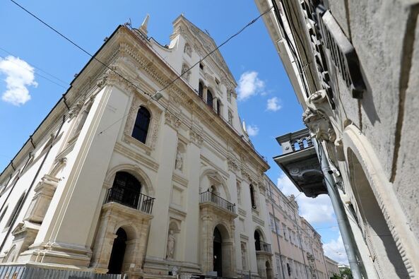 Святиня відома як костел Єзуїтів і належить до Украї́нської гре́ко-католи́цької це́ркви