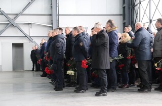 Присутні вшанували пам'ять загиблих хвилиною мовчання, поклали квіти та висловили співчуття їхнім рідним.