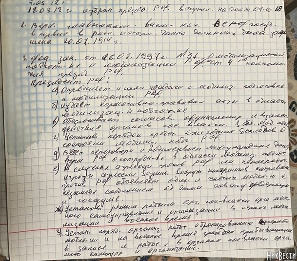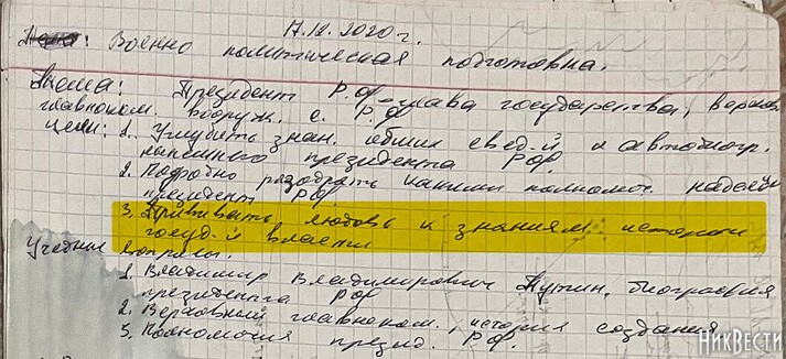 Конспект було зроблено під час навчань, які проходили у Росії у грудні. Тема уроку називалася так: «Президент РФ – глава держави та головнокомандувач збройних сил РФ».