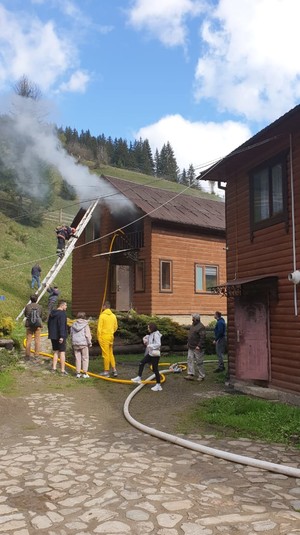 Зранку восьмого травня у селищі міського типу Верховина горів двоповерховий дерев’яний будинок відпочинкового комплексу «Водограй Карпат». Про це інформує galka.if.ua.