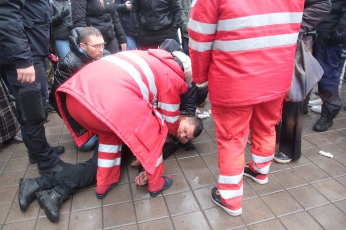 “П’ятеро громадян, які свідомо не виконували законні вимоги працівників поліції та провокували правоохоронців та інших учасників зібрання, були затримані згідно зі статтею 262 Кодексу України про адміністративні правопорушення. Під час затримання один з чоловіків впав на землю. Співробітники поліції надали йому першу невідкладну медичну допомогу та викликали швидку допомогу. З метою діагностування травм потерпілого направили до лікувального закладу”, – йдеться у повідомленні.