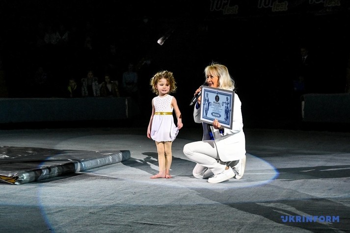 «Ми маємо сьогодні рекорд України – наймолодшу повітряну гімнастку, яка виконала цирковий трюк «вис на шиї» у 4 роки 3 місяці», – прокоментувала керівниця Національного реєстру рекордів Лана Вєтрова.