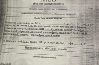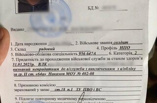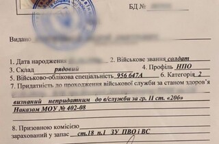 Як зазначається, службові особи районних територіальних центрів комплектування та соціальної підтримки в областях, діючи спільно з членами військово-лікарської комісії, при посередництві третіх осіб, налагодили схему видачі довідок про визнання чоловіків непридатними до військової служби за станом здоров’я.