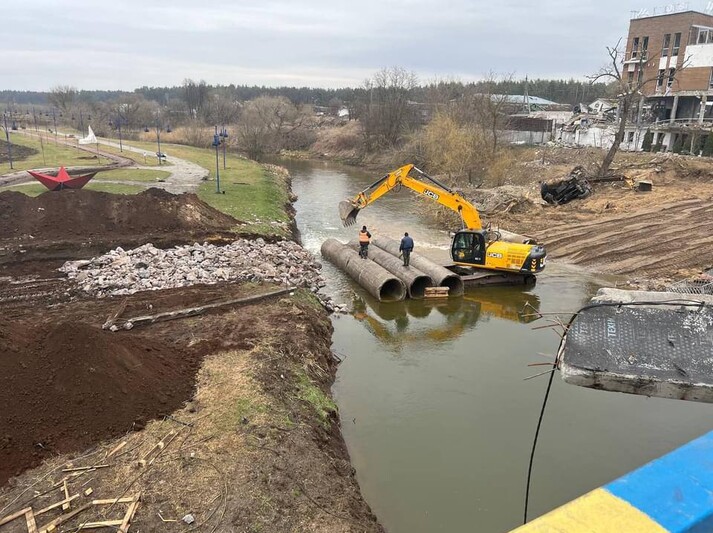 Так, на автошляху Р-30 на під'їзді до Ірпеня вже облаштовують тимчасову переправу.