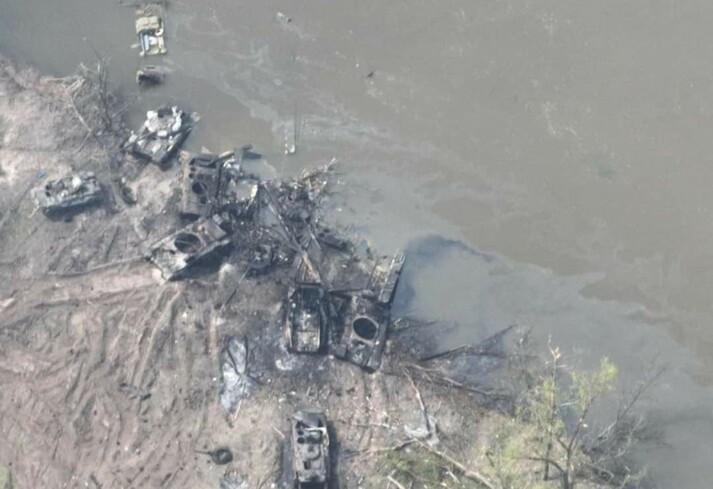 «Сьогодні вчергове розбомбили їхні понтонні переправи разом з технікою, разом із людьми. Там уже десятки валяються БТР, танків розірваних. Це така наша локальна Чорнобаївка. Орки не полишають надію побудувати понтонну переправу, постійно намагаються навести, і постійно ми її розбиваємо», — сказав Гайдай.