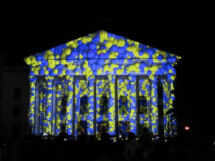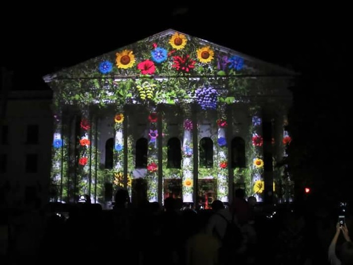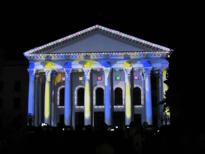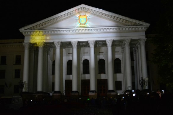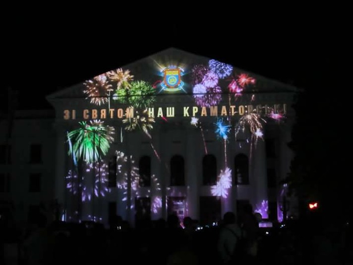 Вперше в Краматорську показали проекційне 3D-шоу На центральній площі Краматорська всі бажаючі змогли помилуватися грандіозним лазерним 3D-шоу, яке було присвячене Дню міста. 7 фото На весь екран Вперше в Краматорську на будівлі ДК НКМЗ показали проекційне шоу.