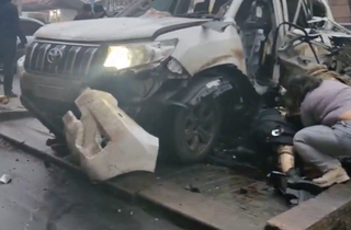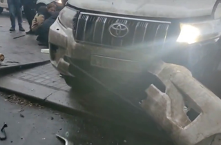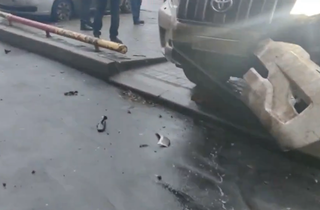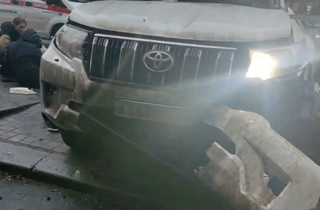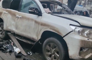 Інцидент стався на вулиці Університетській неподалік від готелю Park Inn. На кадрах, що поширилися в соцмережах, видно обгорілий білий позашляховик, поруч із яким перебуває машина швидкої допомоги.