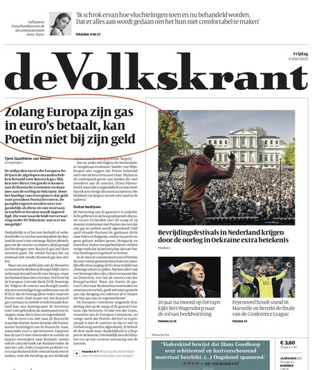 Нідерланди. Газета De Volkskrant: «Поки Європа платить за газ у євро, Путін не може отримати доступу до своїх грошей».