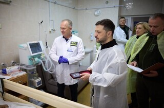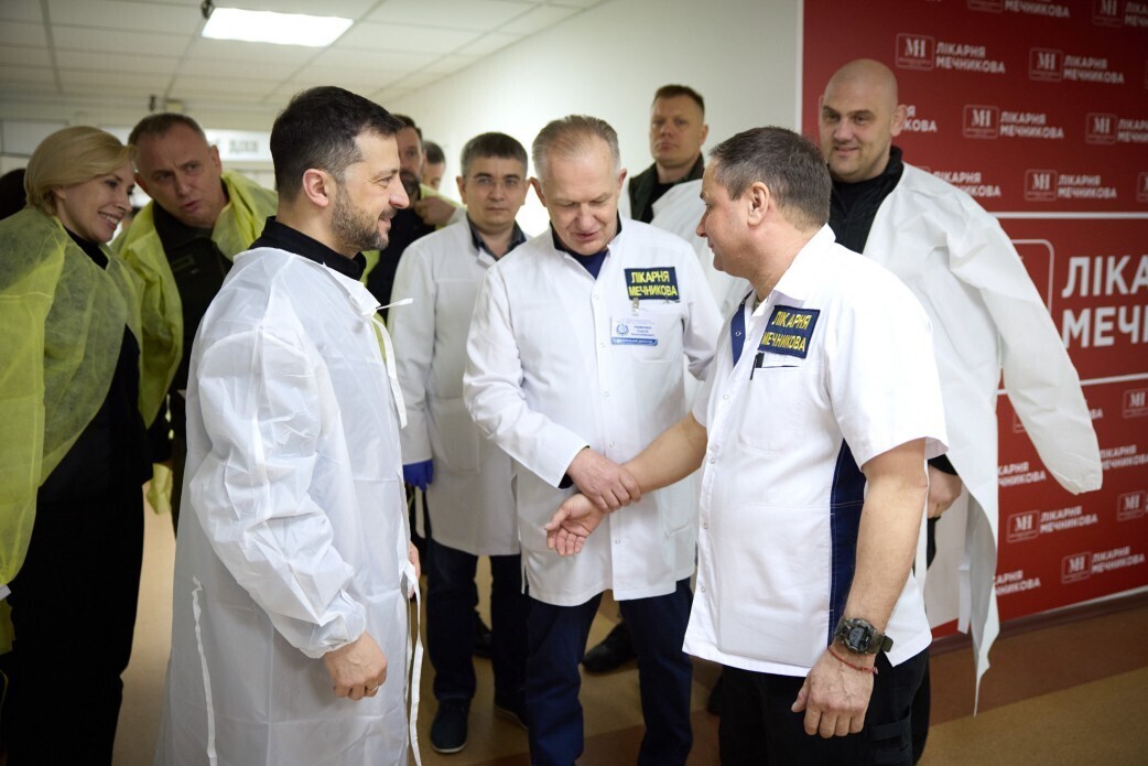 Глава держави ознайомився з роботою реанімації, відділень анестезіології та політравми. Президента поінформували про особливості функціонування лікарні в час повномасштабної війни, оснащення новітнім обладнанням, а також про відновлення закладу після обстрілів.