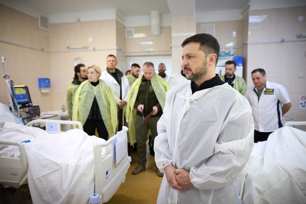 Президент України Володимир Зеленський під час робочої поїздки до Дніпра відвідав медичний заклад, де бійці ЗСУ проходять лікування після поранень. Про це повідомляє «Главком» з посиланням на Офіс глави держави.