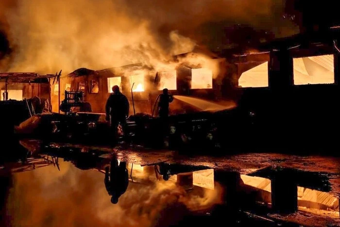 Унаслідок ворожої атаки виникла масштабна пожежа площею 1500 кв. м. За попередніми даними, унаслідок удару ніхто не постраждав.