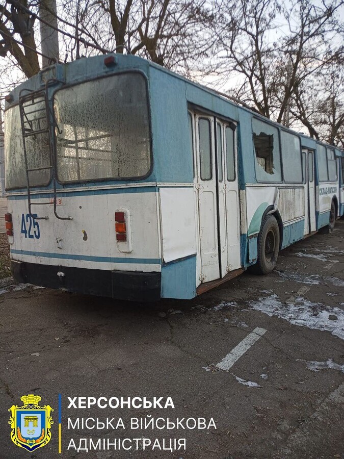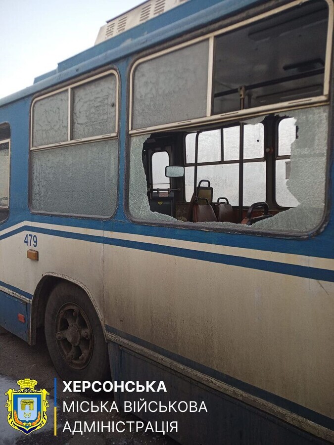 Як повідомлялося, у Дніпровському районі Херсона російські загарбники скинули з дрона вибухівку на тролейбус.
