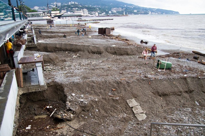 Зливи розмили в Ялті всі пляжі, через що багато хто з туристів вирішив покинути півострів.