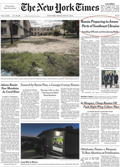 NYT: «Росія готується анексувати частини південного сходу України». Росія, схоже, закладала основу для анексії ділянок південного сходу України. Марат Хуснуллін, заступник прем'єр-міністра Росії з інфраструктури, здійснив поїздку регіоном на цьому тижні і виклав плани щодо встановлення повного контролю над життєво важливою інфраструктурою, включаючи найбільшу в Європі атомну електростанцію.