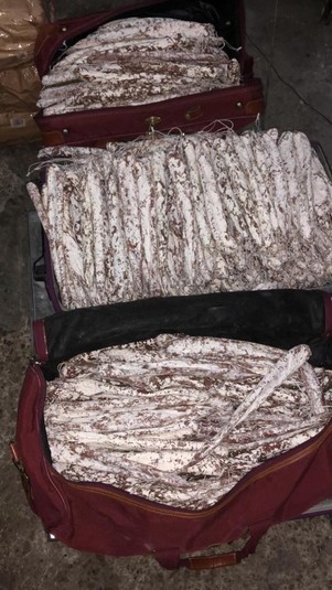 Проте окрім вказаних речей під час огляду авто працівники митниці знайшли 250 кг в’яленої ковбаси. Товар містився в сумках і був обмотаний скотчем.