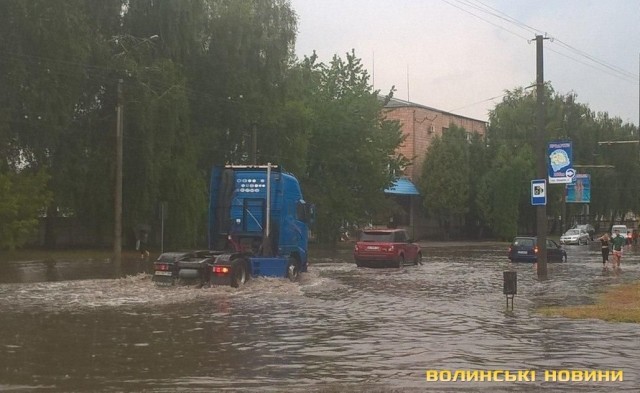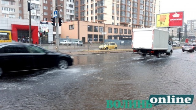 Під час негоди і зливи деякі луцькі вулиці традиційно затопило
