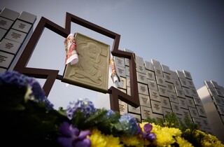 Глава держави встановив лампадку до Стіни пам’яті біля церкви Святого Апостола Андрія Первозваного та Всіх Святих у Бучі. Стіна пам’яті складається з кількох стел, на кожній із яких – таблички з викарбуваними іменами загиблих. Наразі меморіал містить 509 імен цивільних громадян, яких вдалося ідентифікувати. Деякі таблички поки що безіменні.