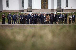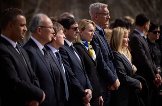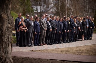 Президент та інші присутні вшанували пам'ять загиблих хвилиною мовчання.