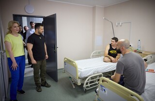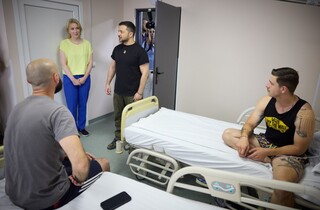 Під час робочої поїздки в Івано-Франківську область президент України Володимир Зеленський відвідав медичний заклад, де перебувають на лікуванні поранені українські військовослужбовці. Відповідне відео Зеленський оприлюднив у Telegram.