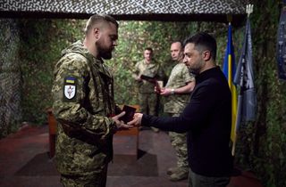 Володимир Зеленський подякував воїнам та їхнім побратимам за захист України і відзначив державними нагородами. «Хочу нагородити вас і подякувати вам за захист держави, нашої територіальної цілісності, за те, що допомагаєте один одному. Бережіть себе. Дякую, що наближаєте нашу перемогу. Всім бажаю перемоги та справедливого миру для всіх нас», – сказав він.