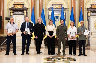 Президент України Володимир Зеленський і перша леді Олена Зеленська вручили восьми людям відзнаки глави держави «Національна легенда України». Про це повідомив Офіс президента України.