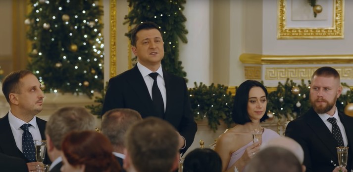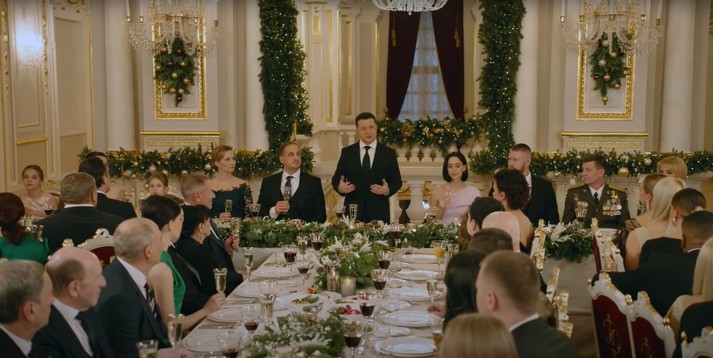 Нагадаємо, 22-хвилинний відеоролик, під час якого президент оголошує святкове звернення, був знятий у форматі застілля. За столом у президента зібрались відомі люди, перед якими Зеленський виголошує промову.
