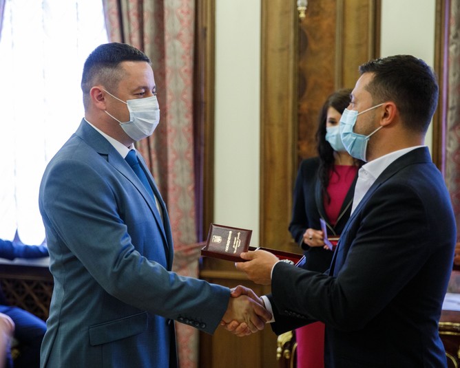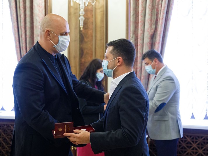 Зеленський у масці вручив ордени та звання своїм колишнім колегам-артистам (фото)